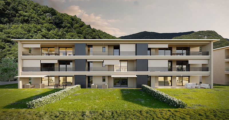 Gli appartamenti al piano terreno dispongono di ampi giardini privati, mentre a nord è stata inserita un’ampia zona verde comune che può ospitare anche un’area ricreativa.
